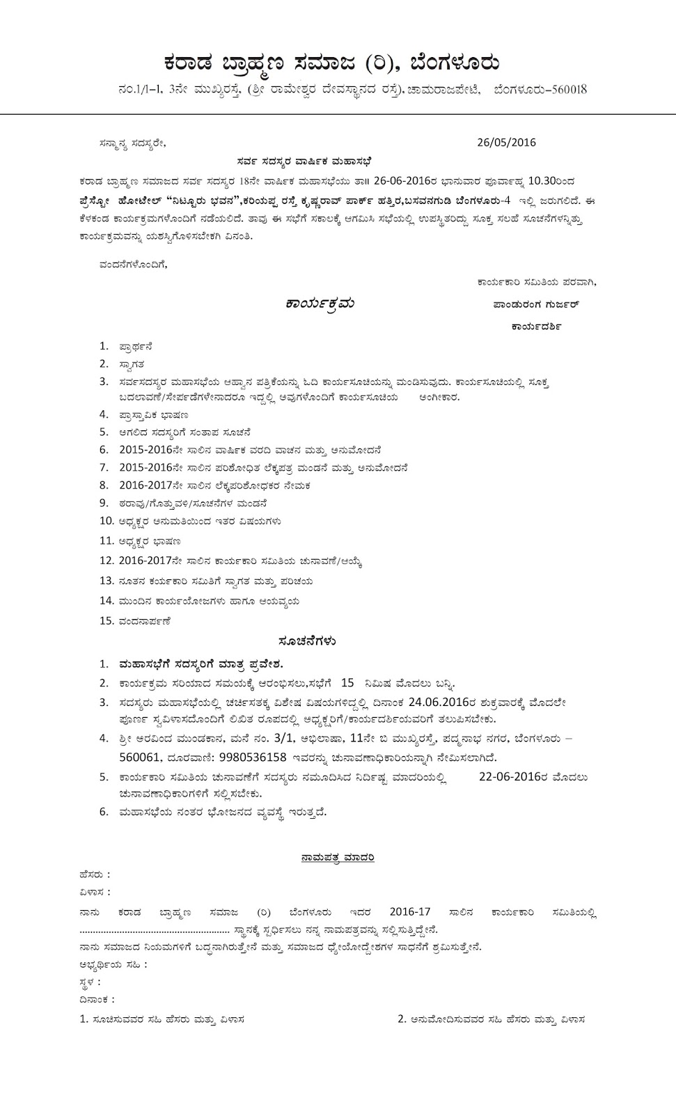 ANNUAL GENERAL BODY MEETING ON 26 JUNE 2016 : BANGALORE